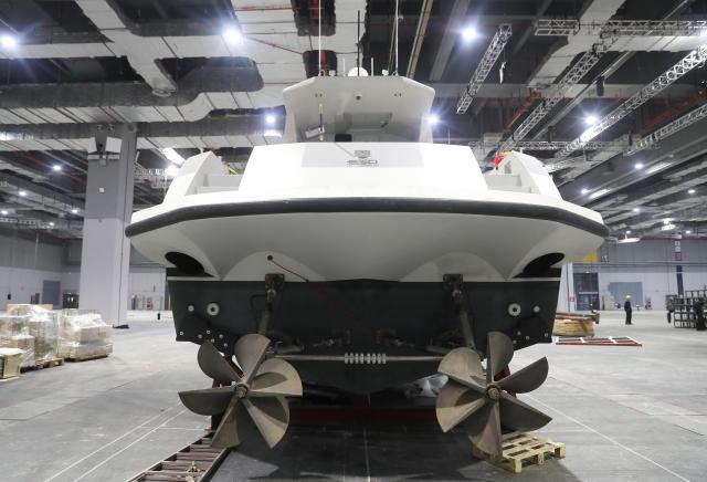 10月25日在國家會展中心(上海)拍攝的法拉帝195型高速巡邏船。新華社記者 丁汀 攝