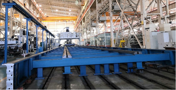鋁合金由于具有密度低、強度高,塑性好等特點,目前廣泛應用于高鐵車體側墻、邊梁、底架、牽枕緩等大型結構件中。目前國內高鐵配套廠家對大型鋁制結構件(機床最大行程達60米)加工設備的需求量大,市場完全被國外機床廠商壟斷。為打破這一困境,沈機集團針對國內某龍頭企業典型零件加工需求,研制超大型龍門移動式五軸加工機床。用于高鐵行業車廂典型件(如側墻、底架、邊梁等)的五軸聯動加工。