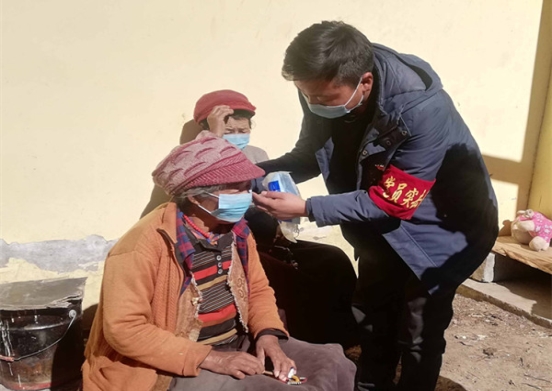中國華電駐村黨員格列旺久為了609名群眾平安而堅守,在海拔3900米的西藏江達縣波羅鄉外沖村耐心細致給村民宣講新冠肺炎疫情防控知識。