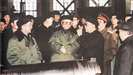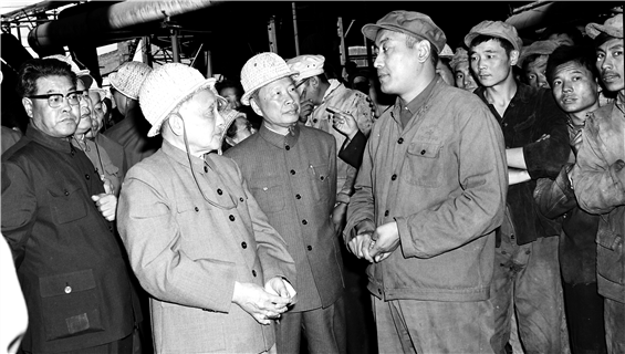 • 1964年4月8日,邓小平视察中国兵器617厂时在总装车间向干部职工招手致意
