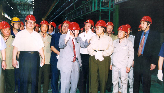 • 1990年2月17日,江泽民视察中国兵器127厂时在车间听取汇报