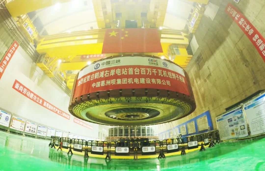 白鶴灘右岸電站首臺百萬千瓦機組轉(zhuǎn)子成功吊裝
