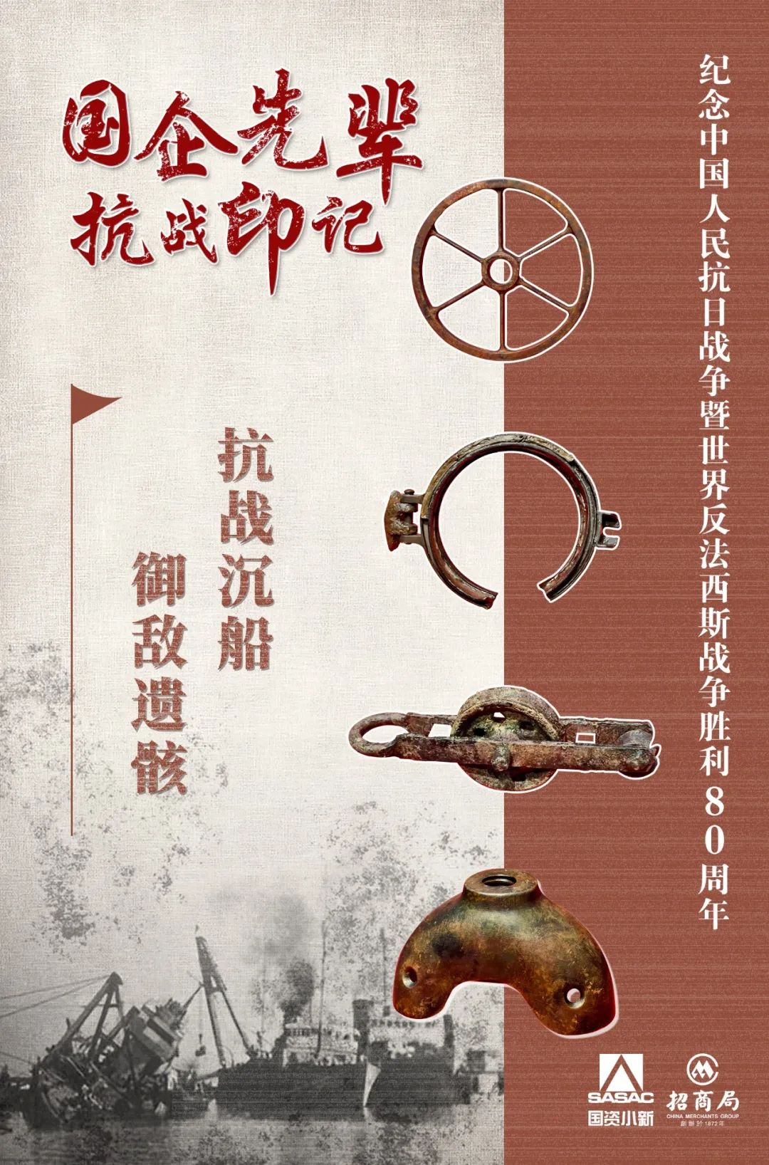 走進位于深圳市蛇口微波山的招商局歷史博物館,“同仇敵愾 抗日救國”板塊的展柜里,幾個銹跡斑斑的船體部件殘骸靜靜地陳列著。